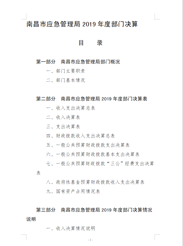 南昌市應(yīng)急管理局2019年度部門決算
